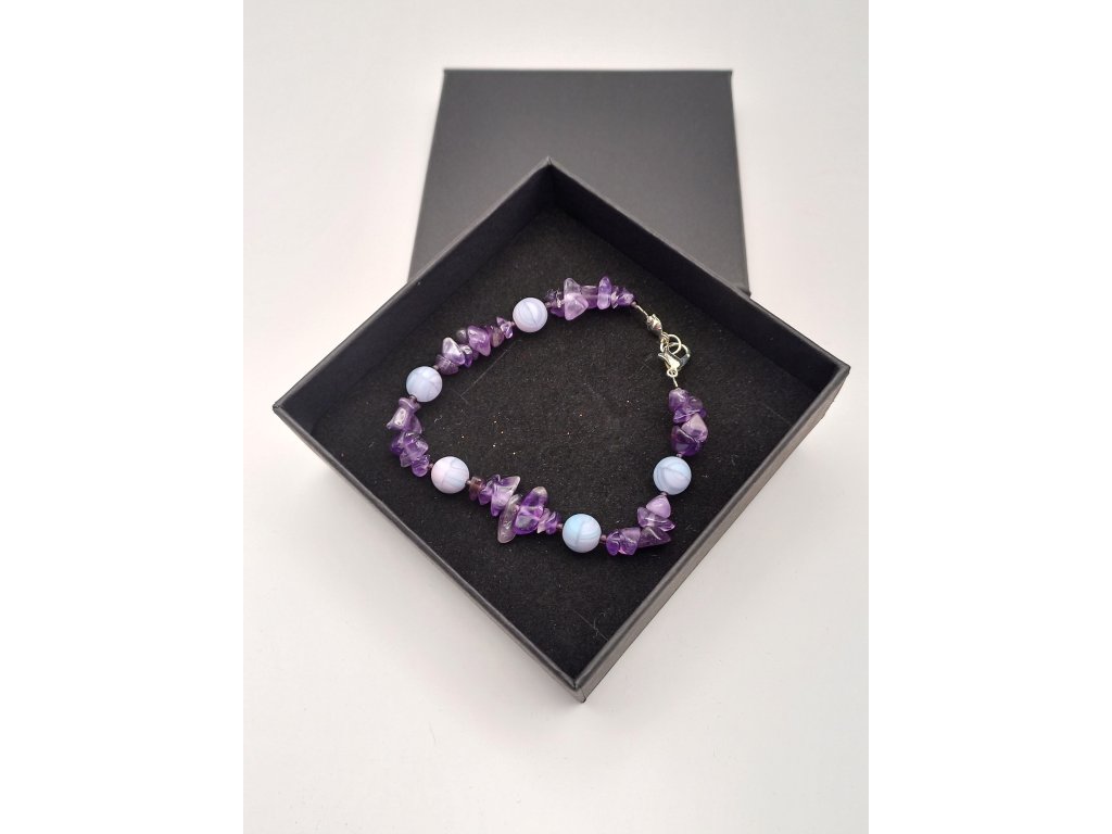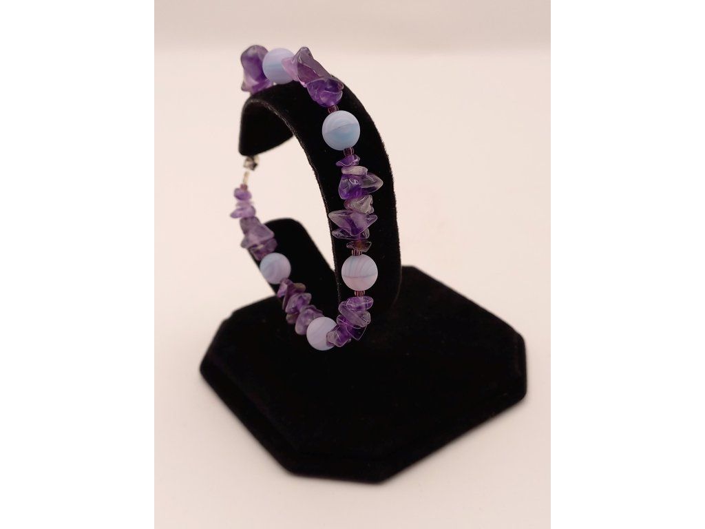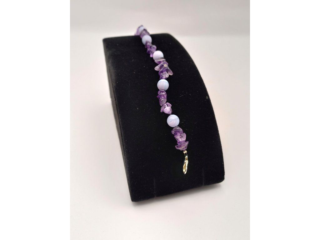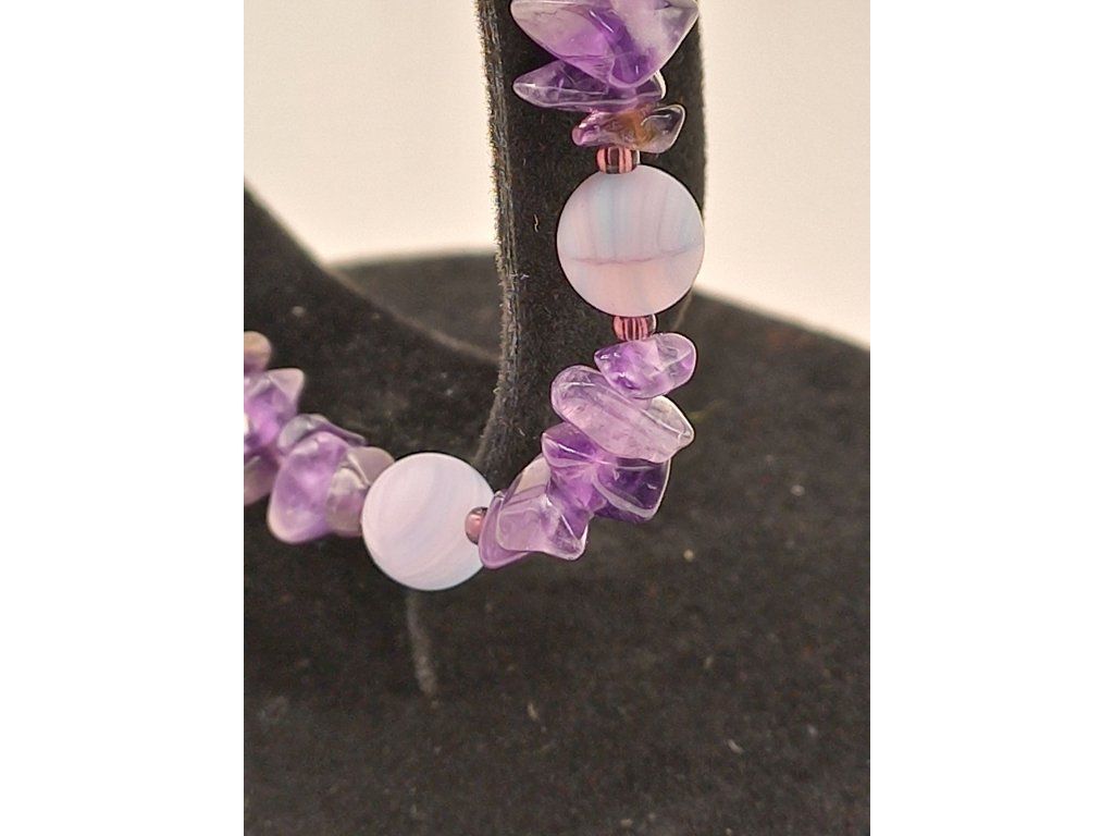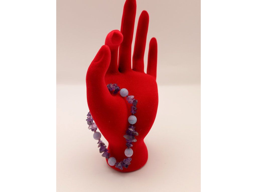 Jemnost a mystika ametystových úlomků v kombinaci s matnými fialkovými korálky. Název odráží hlubokou eleganci a vášeň, je to šperk, který jistě zaujme svou něžnou krásou.