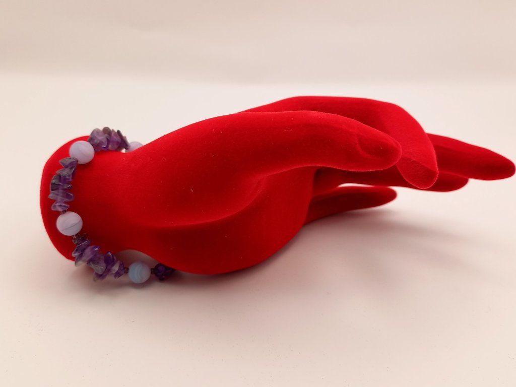 Ametyst - posiluje naši vůli a zlepšuje koordinaci nervové soustavy. Podporuje intuitivní vnímání. Uklidňuje spánek chrání před špatnými sny. Posiluje rodinné vztahy a přátelství a mírní spory. Ochraňuje před negativní energií.