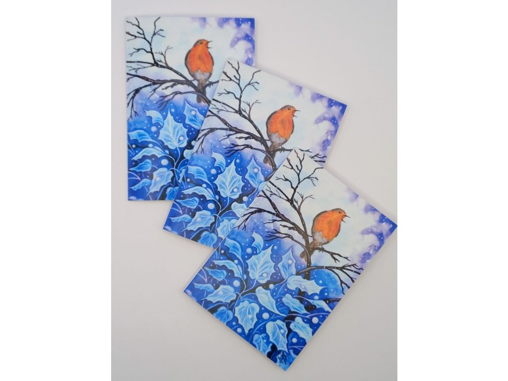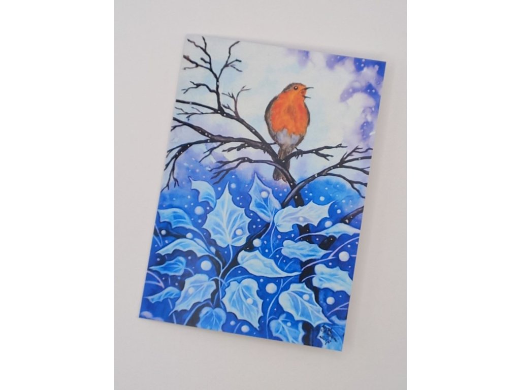 - Motiv: červenka obecná, akvarel, zimní příroda