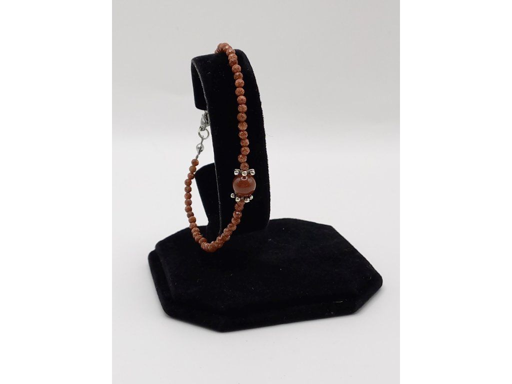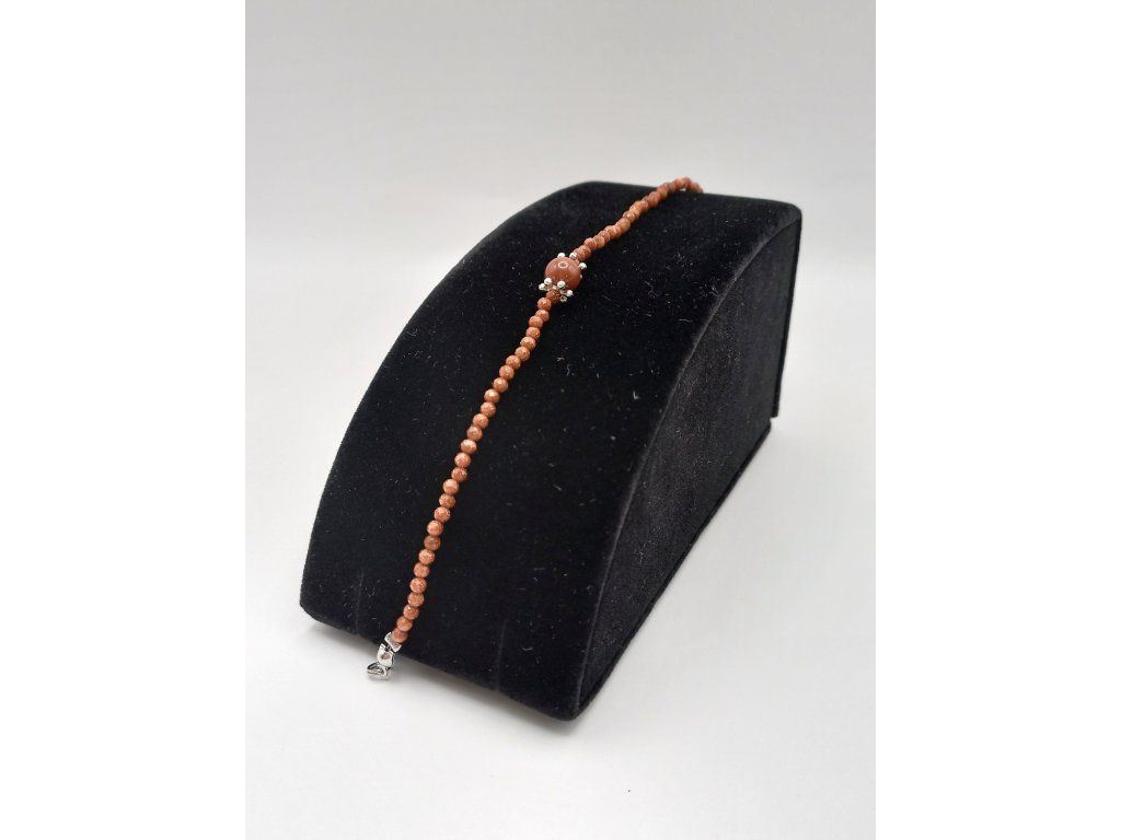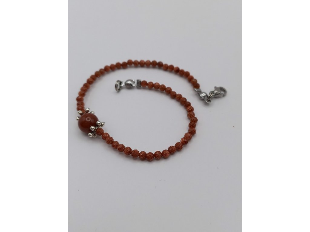 Náramek je navlečen na pevném bižuterním lanku o délce 21 cm, náramek je tvořen drobnými 3mm korálky z avanturínu zlatého, které přinášejí jemný třpyt a harmonickou energii. Dominantou je 8mm jadeitový korálek uprostřed, jehož přírodní odstíny dodávají celkovému vzhledu rovnováhu a klid.