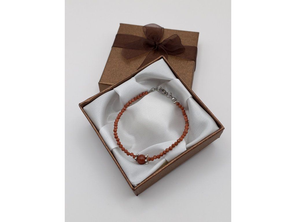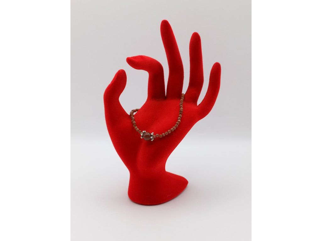 Doplňují jej bižuterní komponenty ve stříbrném provedení, které podtrhují jeho sofistikovanost. Uzávěr tvoří karabinka z chirurgické oceli, zajišťující pevnost a dlouhou životnost. Tento náramek je symbolem jemné elegance a vyrovnanosti, který skvěle doplní váš styl.