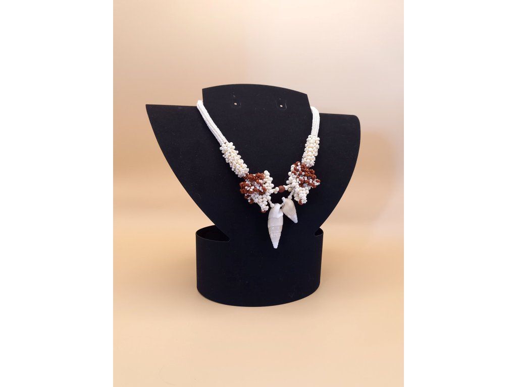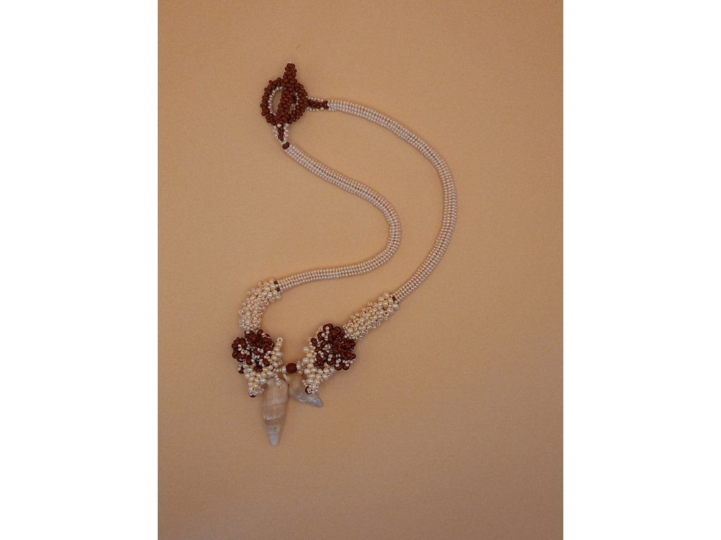 Zachycující podstatu a mystiku v dávném pravěkém moři. Byl vytvořen do 28. kola klubové soutěže Fler Beadweaving Teamu na téma "Pravěk". Náhrdelník je šitý technikou rybí kost, uprostřed zdobený béžovými dutinkami a hnědými větvičkami a dále se dvěma béžovými přírodními spirálovými mušlemi.