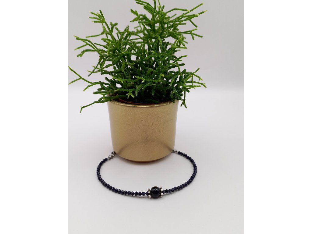 Jedinečné propojení temnoty a klidu s tajemným nádechem modrého avanturínu. Ochranná funkce černého achátu dodává sílu a stabilitu, zatímco jemné odlesky avanturínu přinášejí harmonii a vyrovnanost. Černý achát, známý také jako černý onyx, je ochranný kámen, který pomáhá eliminovat negativní energii a chránit před nežádoucími vlivy.